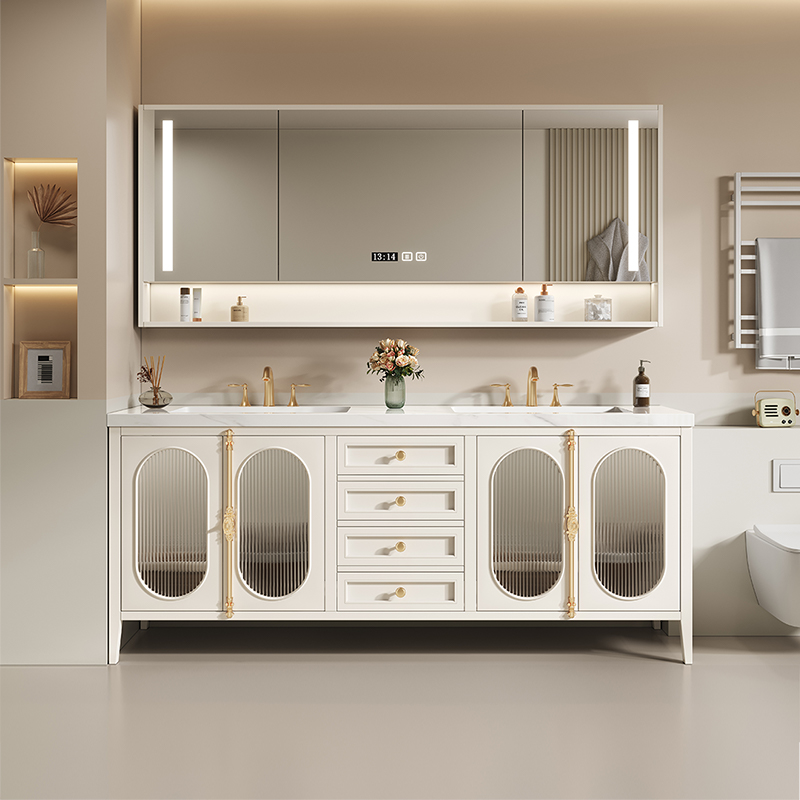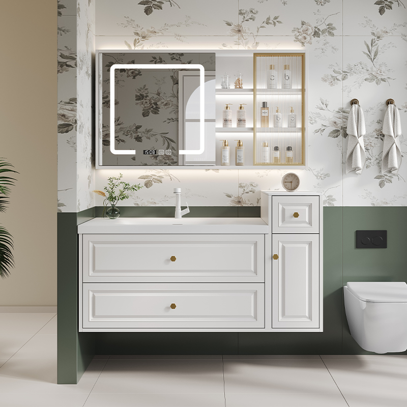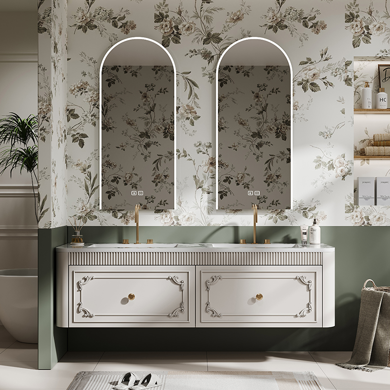 ✅ Hidden Storage + Open Shelving: Concealed toiletry compartments paired with decorative open shelving for clutter-free elegance.