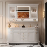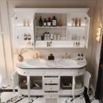 ✅ Hidden Storage + Open Shelving: Concealed toiletry compartments paired with decorative open shelving for clutter-free elegance.