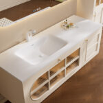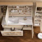 ✅ Hidden Storage + Open Shelving: Concealed toiletry compartments paired with decorative open shelving for clutter-free elegance.