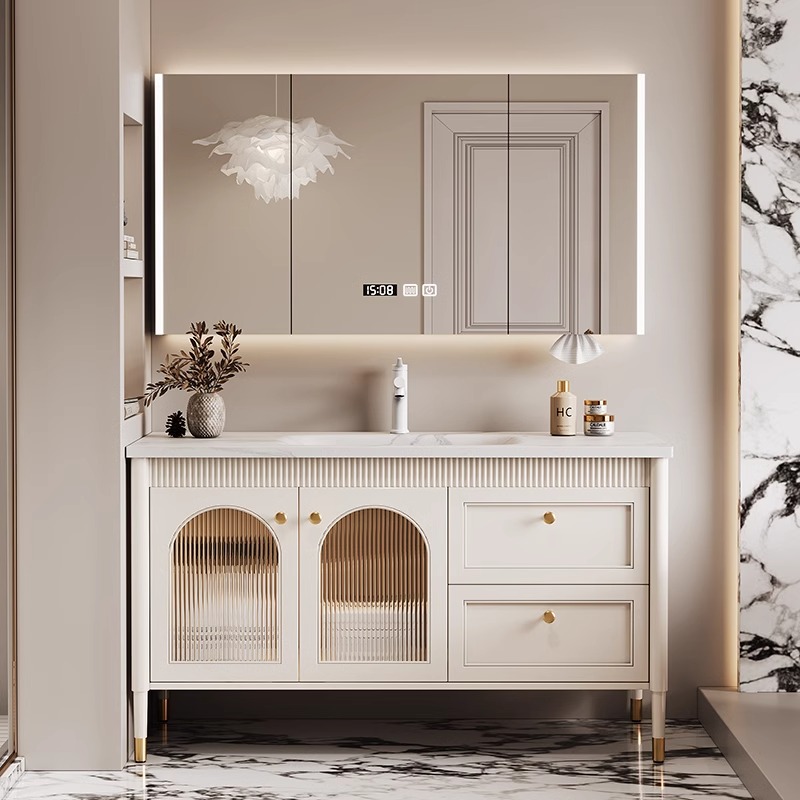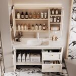 ✅ Hidden Storage + Open Shelving: Concealed toiletry compartments paired with decorative open shelving for clutter-free elegance.