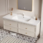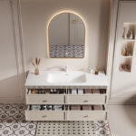 ✅ ​Hidden Storage + Open Shelving: Concealed toiletry compartments paired with decorative open shelving for clutter-free elegance.