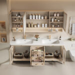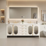 ✅ ​Hidden Storage + Open Shelving: Concealed toiletry compartments paired with decorative open shelving for clutter-free elegance.