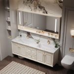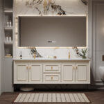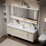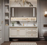 ✅ Hidden Storage + Open Shelving: Concealed toiletry compartments paired with decorative open shelving for clutter-free elegance.