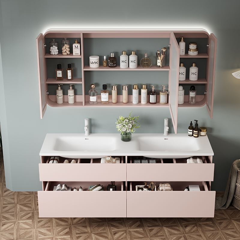 ✅ Hidden Storage + Open Shelving: Concealed toiletry compartments paired with decorative open shelving for clutter-free elegance.