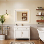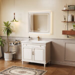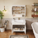 ✅ Hidden Storage + Open Shelving: Concealed toiletry compartments paired with decorative open shelving for clutter-free elegance.