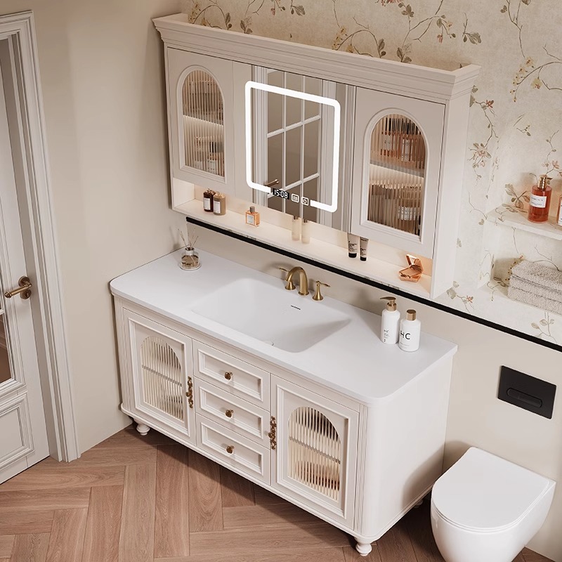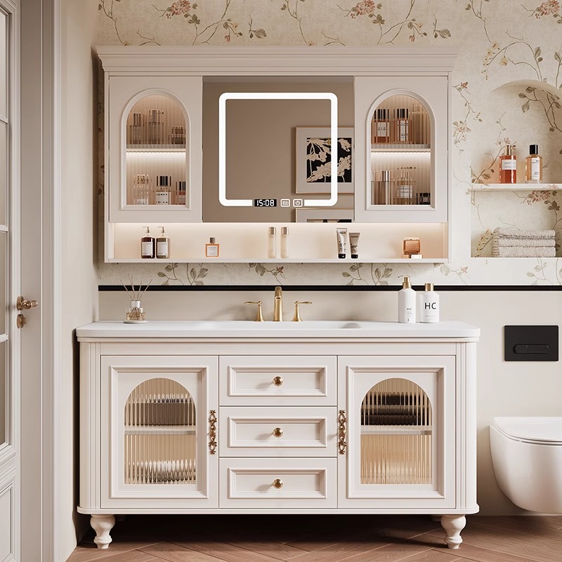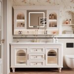 ✅ Hidden Storage + Open Shelving: Concealed toiletry compartments paired with decorative open shelving for clutter-free elegance.