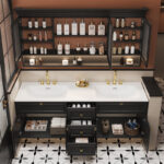 ✅ Hidden Storage + Open Shelving: Concealed toiletry compartments paired with decorative open shelving for clutter-free elegance.